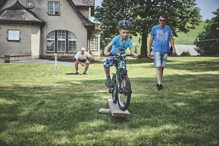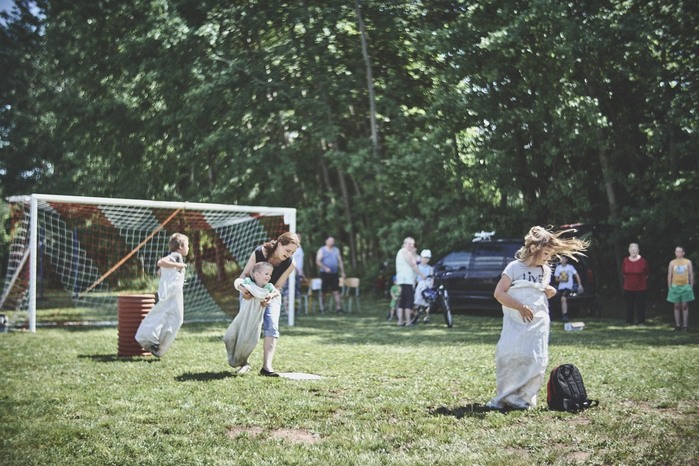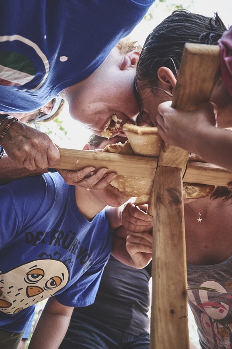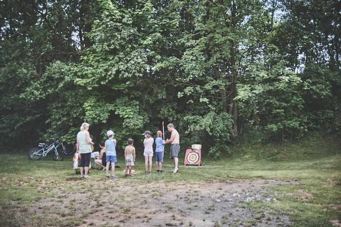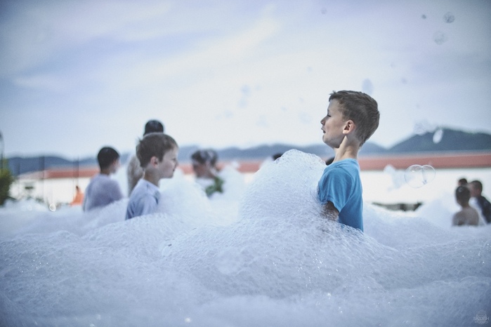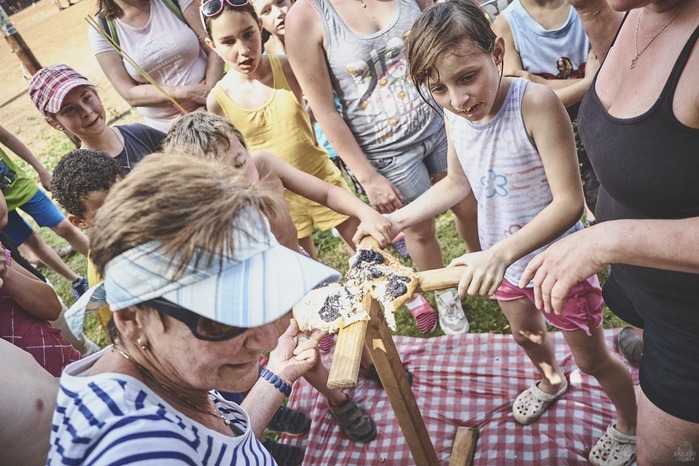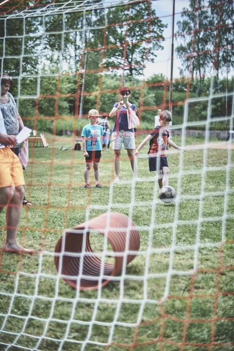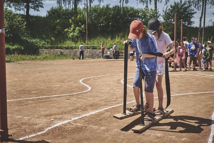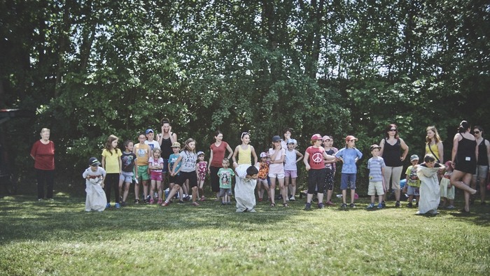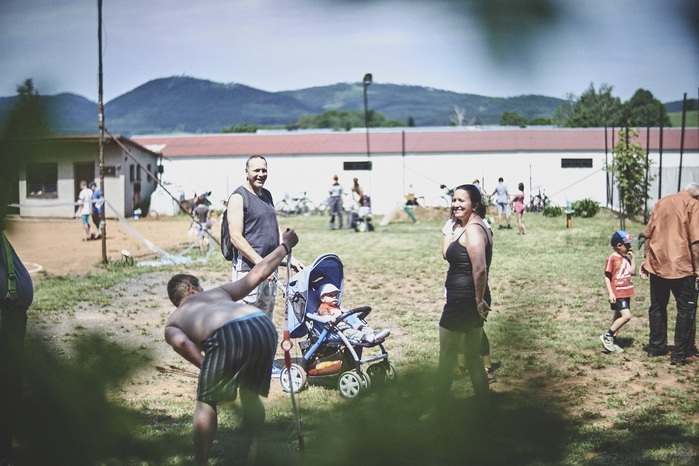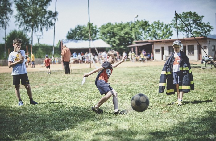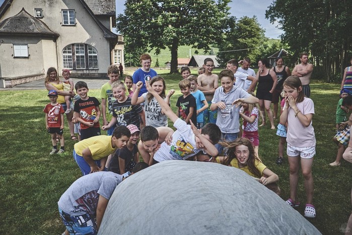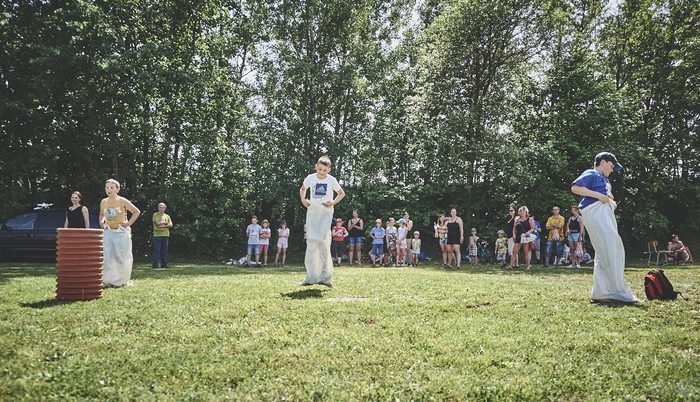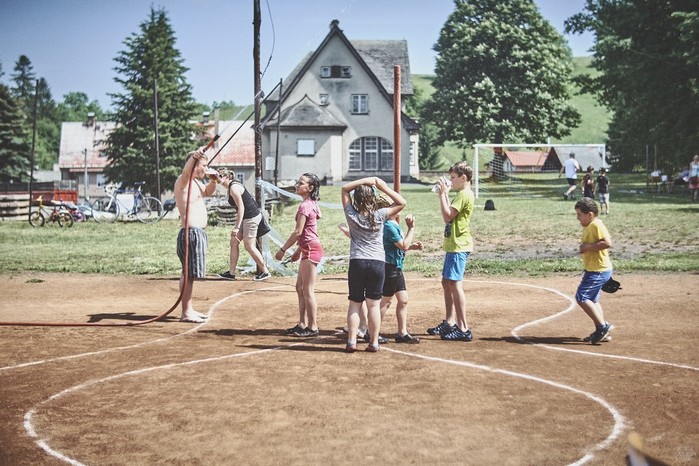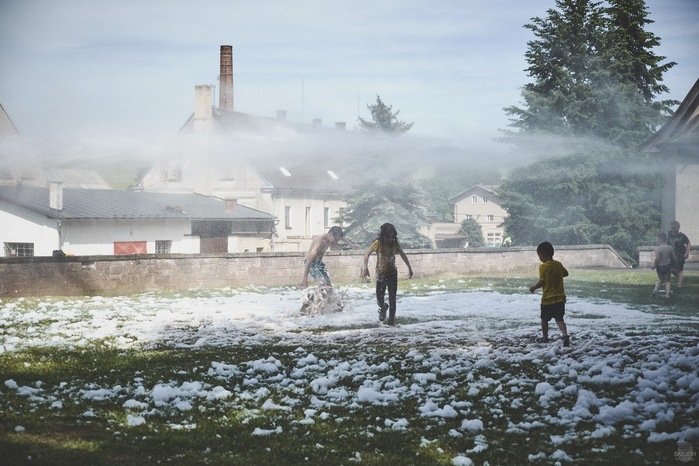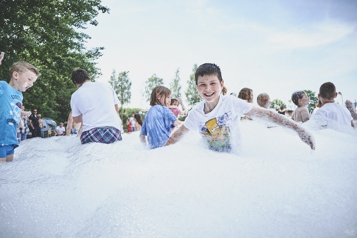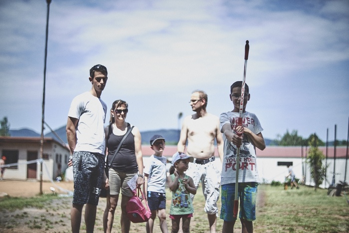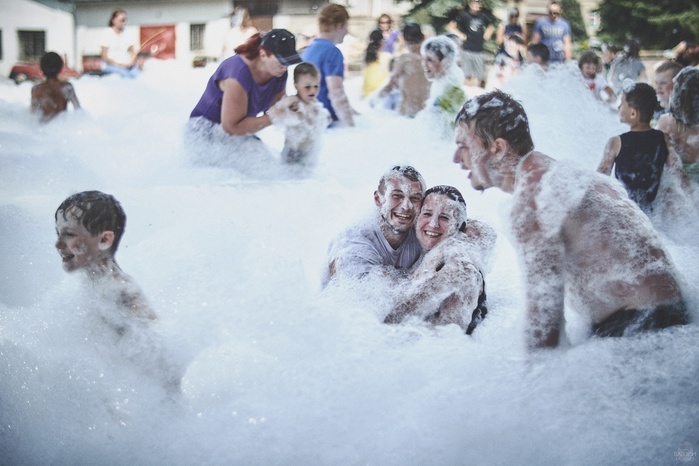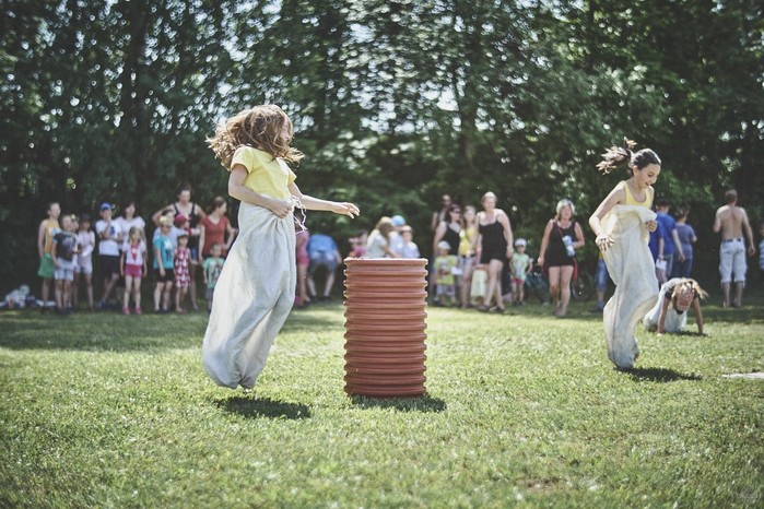 V čem mohly děti soutěžit? Inu, když něco funguje, tak proč to nějak obšírně měnit. Takže akce se neobešla bez letitých atrakcí jako je trefování plastových soudků a klauna, lovení rybiček, slalomu na lyžích pro dva, střílení ze vzduchovky, stříkání ze džberovky, skládání pexesa nebo slalomu s floorbalovou hokejkou mezi kuželkami. Jako minulý rok se opakovala úspěšně překážková dráha BESIP pro koloběžky, kola a odstrkovadla. Letos se ale děti tak dobře nepřipravily a nedovedly si své vlastní dopravní prostředky. I přesto všechny nějakým způsobem dráhu dokázaly absolvovat. Také se střílelo z luku, což je dlouhodobě jedna z nejoblíbenějších akvizic našeho ansáblu. Pila se dlouhými brky malinovka ve dvojicích a děti si mohly použitá dlouhá brka nechat, ale jejich neskladnost stejně vedla k tomu, že jich spousta skončila v koších na odpadky. Přes počáteční upejpání se nakonec děti odhodlaly i k účastem na tradičním prožírání se koláčem. Letos mile překvapilo, že u skákání v pytlích ve trojicích hojně zastupovali své ratolesti i tatínci a řekl bych podle vlastního pozorování, že se jim to velice líbilo. Možná bychom měli oprášit letitý nápad uspořádat v USA velice populární Den otců, který se pravidelně slaví v červnovém měsíci a otcové soutěží ve dvojicích se svými dětmi. Děti pomalu unavovalo slunce natolik, že ty menší už pomalu usínaly. Něco málo zpravilo kropení antuky, které děti využívaly hojně ke svému ochlazení a bavilo je běhat pod krůpějemi vody z hadice. Vrchol celé akce ale byl, když hasiči úspěšně natočili dětem pěnu a děti si ji užily tak jako nikdy. Poté se rády nechaly zkropit z vodního děla, až vzniklo na louce docela slušný bahýnko a některá čuňátka se v něm ráda porochtala. Naštěstí poblíž stáli rodiče, které je včas zarazili a pak začal koloběh oplachování a sušení.