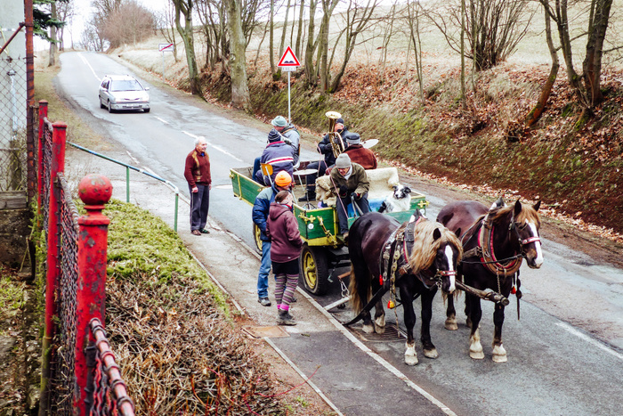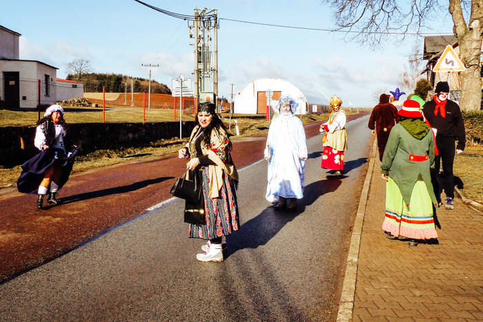 Tuto náročnou trasu většina masek zdolala až do konce. Masky sehnaly poměrně slušnou tombolu, akorát se nedařilo letos stavět auta, protože jich kupodivu moc nejezdilo a tak se musely masky spokojit hlavně s výběrem penízků po navštívených domácnostech. Jako již minulý rok jel s koňským povozem pan David Štauda a vezl čtyři muzikanty z kapely Broumovanka s kapelníkem panem Vlkem. Spolu s maskami udělali radost spoustě lidem, hlavně pak starší generaci.