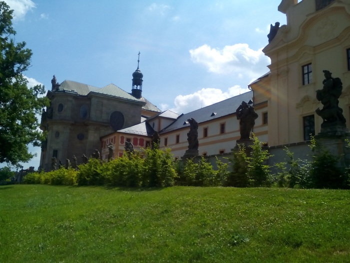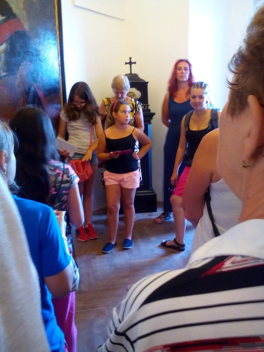 Někteří z nás již v nedávno kompletně opraveném Hospitalu byli, jiní sem zavítali poprvé, ale všichni jsme se těšili na společnou prohlídku. Objednali jsme si základní okruh a viděli opravdu to nejlepší: obrazárnu všech významných z rodu Šporků, zmenšený model celé vesnice Kuks s lázeňskými domy, kolonádou, Hospitalem a zahradou, tajemné malby Tance smrti, barokní lékárnu U granátového jablka a slavné sochy Ctností a Neřestí od Matyáše Bernarda Brauna. Na závěr prohlídkového okruhu nás čekalo malé překvapení. V kostele Nejsvětější trojice byl pro nás připraven krátký koncert barokní ale i nové hudby od dua „Solideo“. Hráli na neobvyklé historické nástroje např. na „gemshorny“ (mufloní a kravské rohy), na „šalmaj“ (předchůdce klarinetu) nebo na středověké tříhlasé dudy. Všechny skladby byly úžasné, výborná akustika kostela vytvořila takovou atmosféru, že mnohým při poslední skladbě od Leonarda Cohena – „Hallelujah“, lezl mráz po zádech.