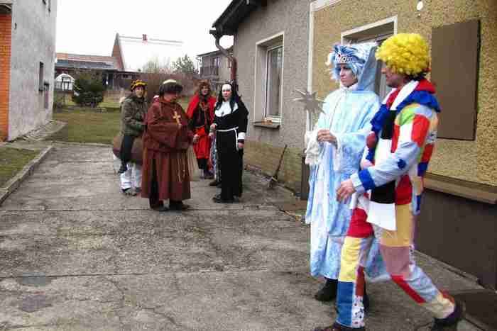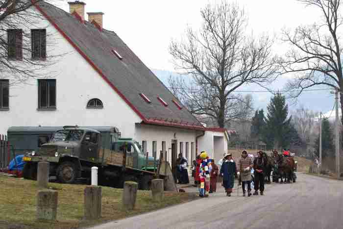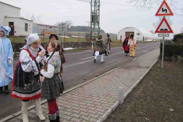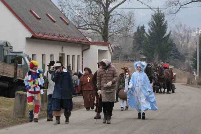 Letos se opět konal tradiční průvod masek. Sešlo se jich 14, což byla pěkná účast. Objevovaly se oblíbené masky čarodějnic, šenkýřek, mnichů, jeptišek a starých hrbatých bab, ale také nové jako jezdec na závodním pštrosu nebo hippie. Průvod vyrazil kolem 9-té v doprovodu osvědčených muzikantů na povoze, který táhli koně p. Dostála z Otovic. Ten své miláčky kočíroval bez jakýchkoliv problémů skoro celou obcí během dne a patří mu velký dík.